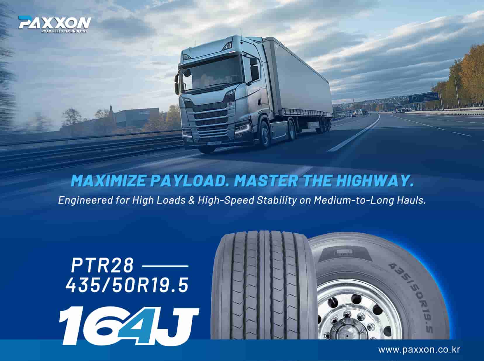 That’s why PAXXON introduced the PTR28 435/50R19.5 164J — a tire designed specifically for highway and paved road transport, delivering reliable support for medium- and long-haul operations.